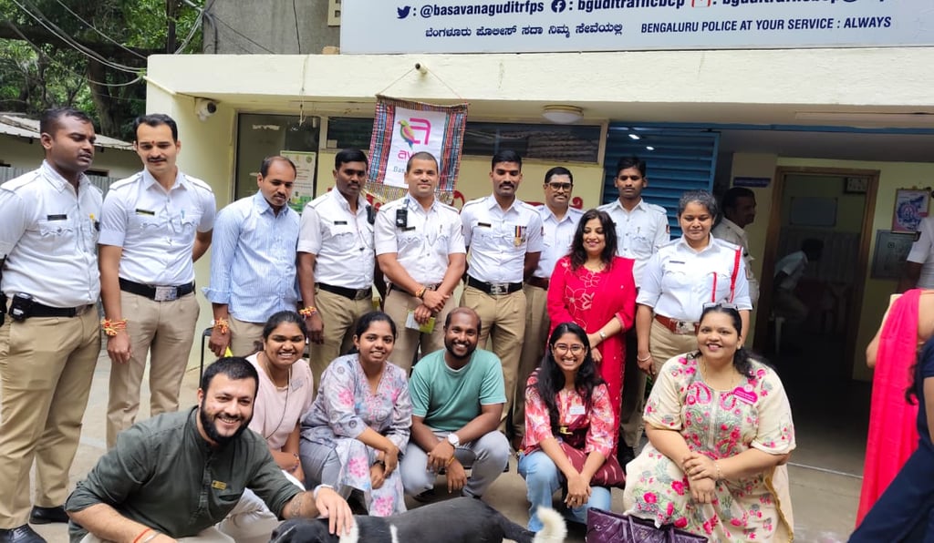 "The Rotaract Club of Bangalore Jayanagar, jointly with the Arya Vaishya Ladies Group International (Basavanagudi Wing), celebrated Rakshabandhan on 16th August 2025 by visiting the Basavanagudi Police Station. This initiative was aimed at expressing gratitude and appreciation towards the traffic police who tirelessly ensure the safety and smooth functioning of our community.